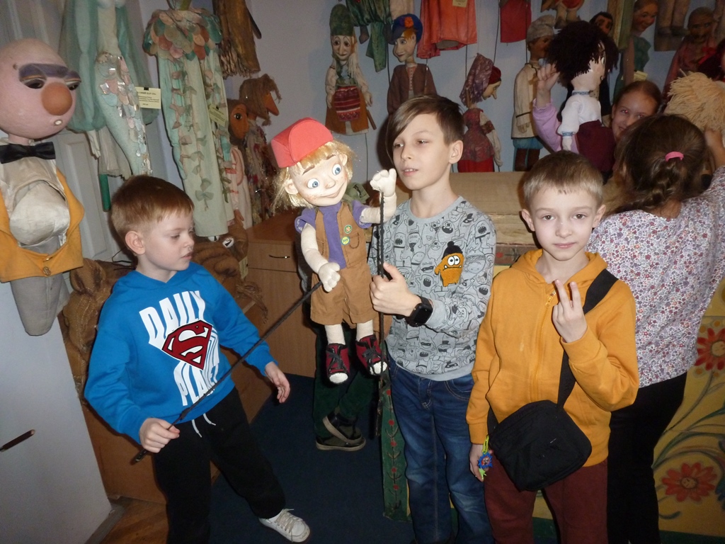 У цікавій та невимушеній формі діти довідалися про театральні професії: художника, декоратора, бутафора, актора, оператора світла, оператора звуку. Працівники театру ділилися з дітлахами довготривалим процесом створення казки, відповідали на питання та продемонстрували як працюють з різними видами ляльок.