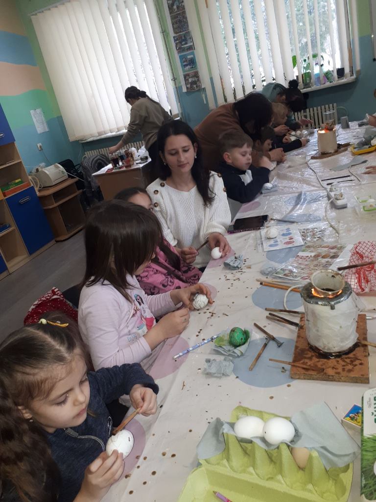 6 квітня 2023 р. в дитячо-юнацькому клубі «Прометей» для батьків та дітей, які зібрались разом навчитись та власноруч створити мальовничий оберіг – писанки, керівник гуртка «Моделювання іграшок та сувенірів «Творча мозаїка» Мар’яна Равлюк провела два майстер-класи. Мар’яна розповіла цікавинки про таємниці виготовлення класичної писанки, традиції і сучасні тренди писанкарства.