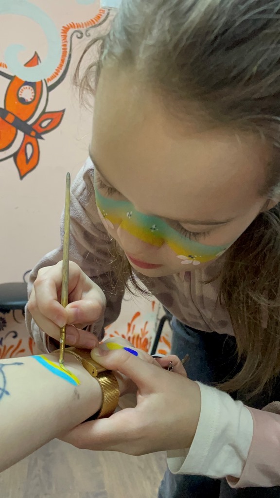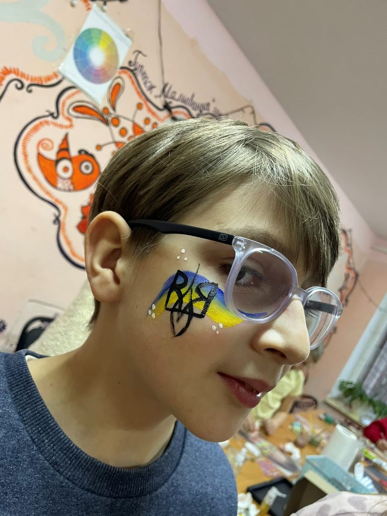 Під час практичної частини заняття діти створювали патріотичні малюнки у техніці аквагриму.
