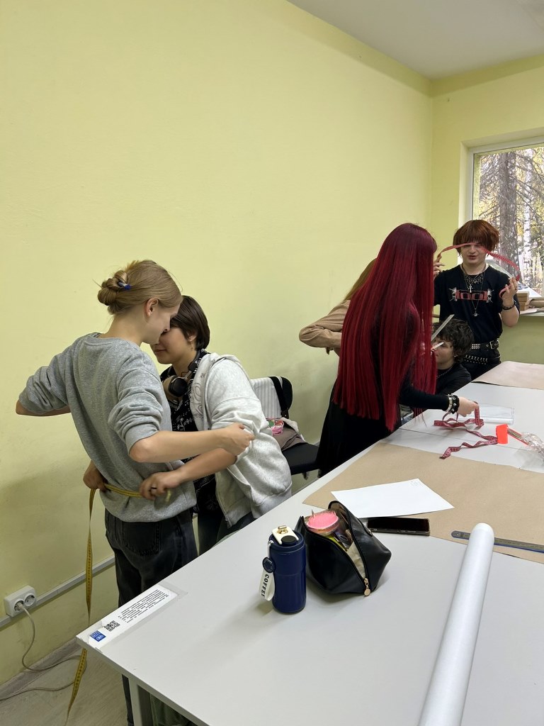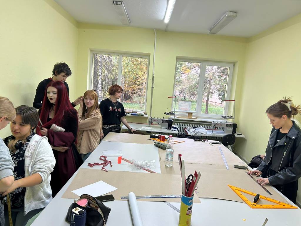 На занятті гуртка «Інноваційна школа кравецької майстерності» (друга група, керівник Анжеліка Струк) юні модельєри опановували навички зняття мірок, на основі яких будували конструкції брюк на свою фігуру.