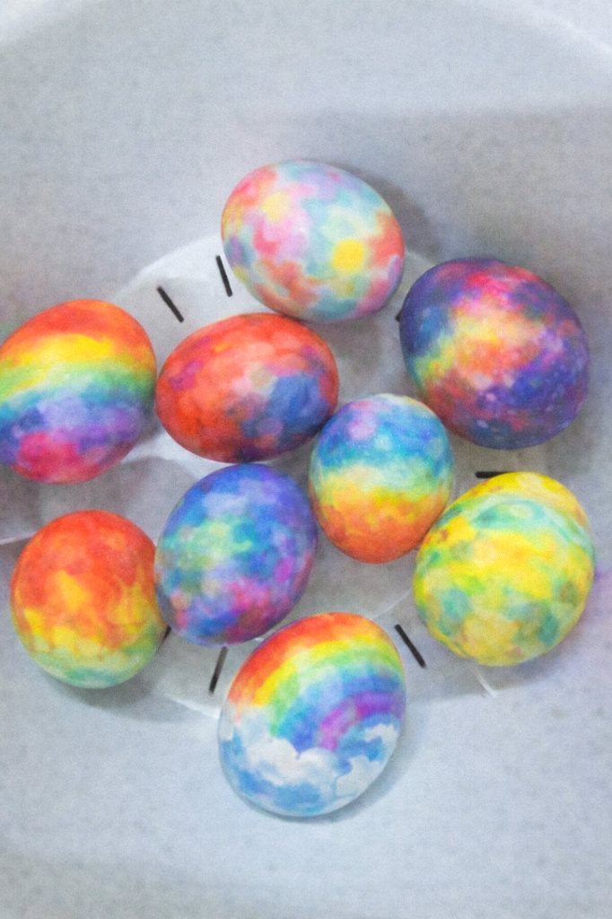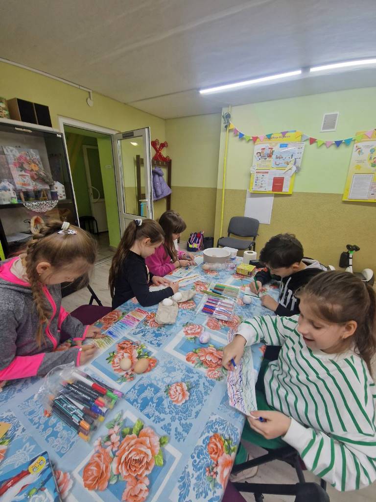 На майстер-класі "Яскраві яйця" діти із задоволенням розфарбовували великодні яйця водними фломастерами.