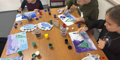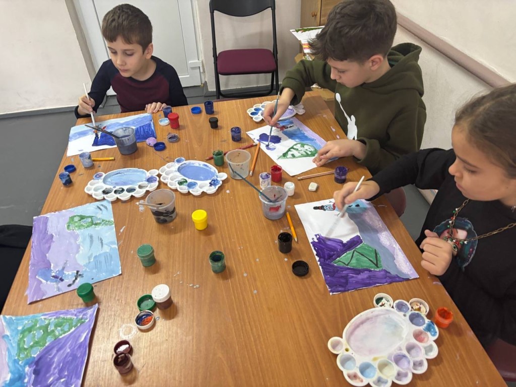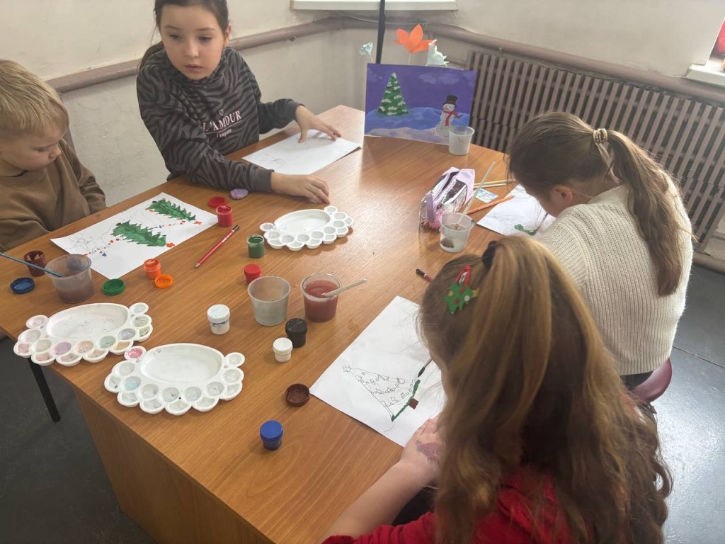 На майстер-класі «Зимової академії дозвілля» в дитячо-юнацькому клубі «Мангуста» (керівник гуртка Семеген Кароліна з дитячо-юнацького клубу «Глобус») діти навчалися відтворювати новорічний пейзаж, а також здобували базові навички кольорознавства.