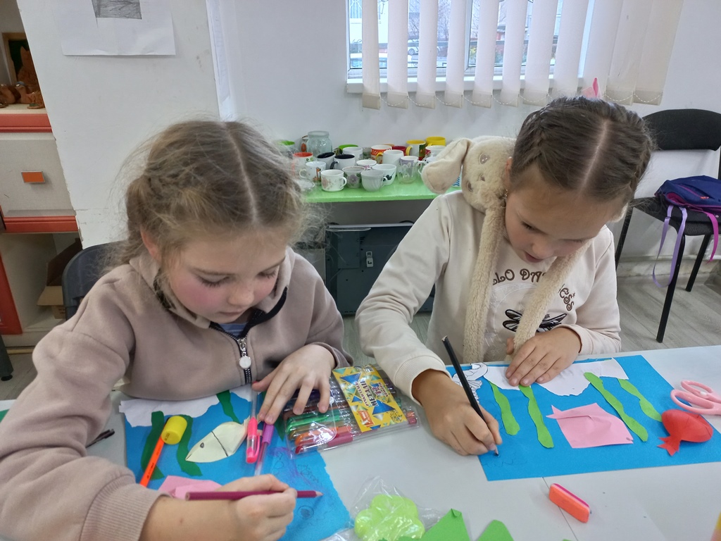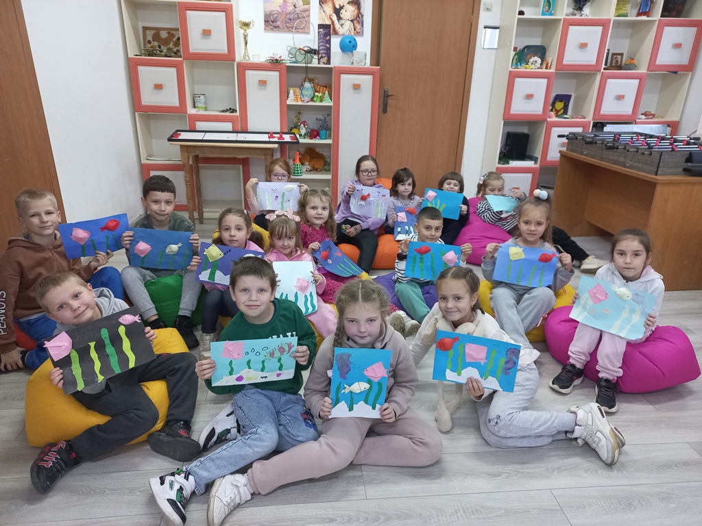 На творчій годині «Морський світ» при допомозі педагога Галини Щербан діти поринули в захопливу подорож океаном. Вони створювали аплікації з рибок та морських коників, коралами й морськими зірками. Під час заняття діти дізналися багато цікавого про життя мешканців моря.