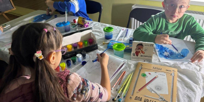 На занятті гуртка з образотворчого мистецтва «Аполлон» в дитячо-юнацькому клубі «Глобус» (керівник Семеген Кароліна) вихованці ознайомилися з базовими вправами кольорознавства та формоутворення створюючи зимову композицію.