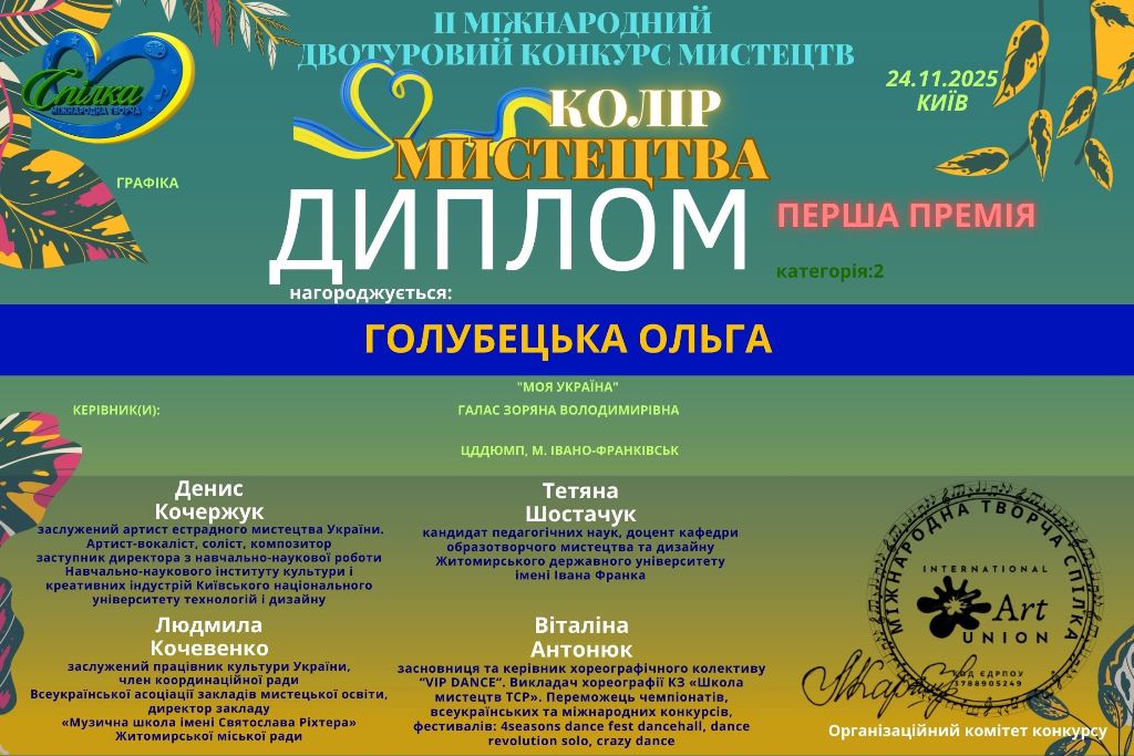 Галас Єва та Голубецька Ольга, вихованки мистецької студії «Фокус» зайняли перше місце на Міжнародному конкурсі мистецтв «Колір мистецтва».