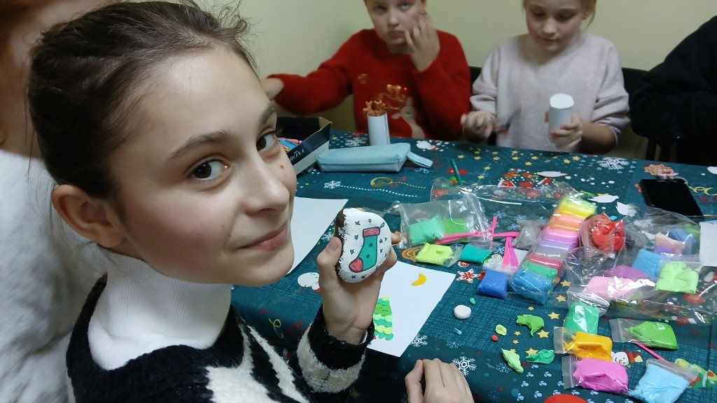 Діти із захопленням виготовляли аплікації з пластиліну, свічки з паперових втулок, малювали зимові пейзажі на камені, вкладаючи у свої роботи щирі побажання й власне бачення свята Різдва.