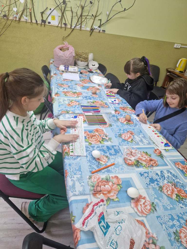 На майстер-класі "Яскраві яйця" діти із задоволенням розфарбовували великодні яйця водними фломастерами.