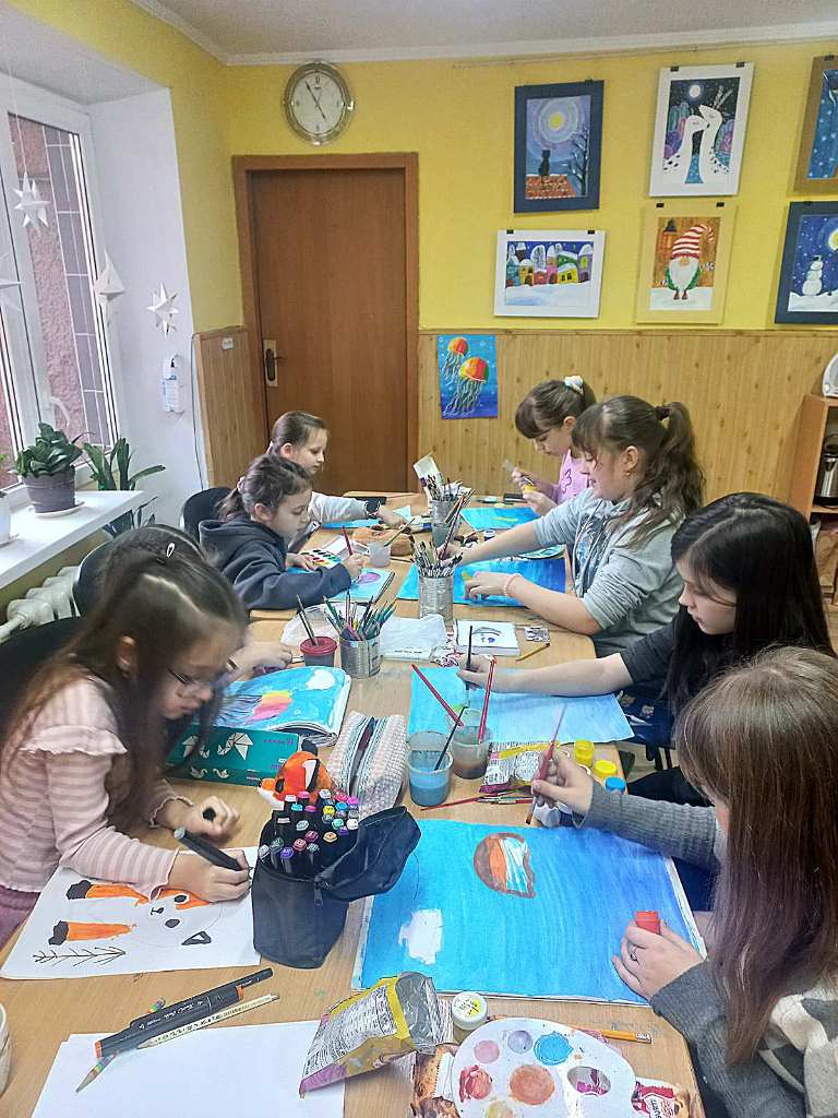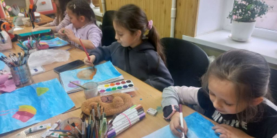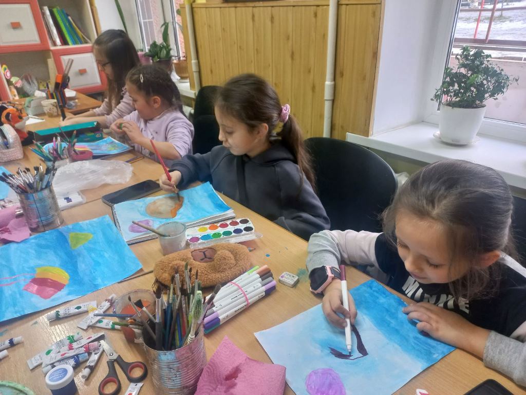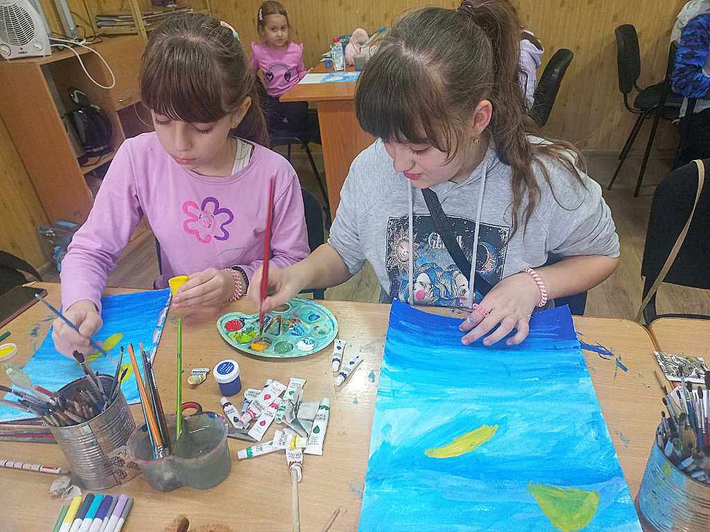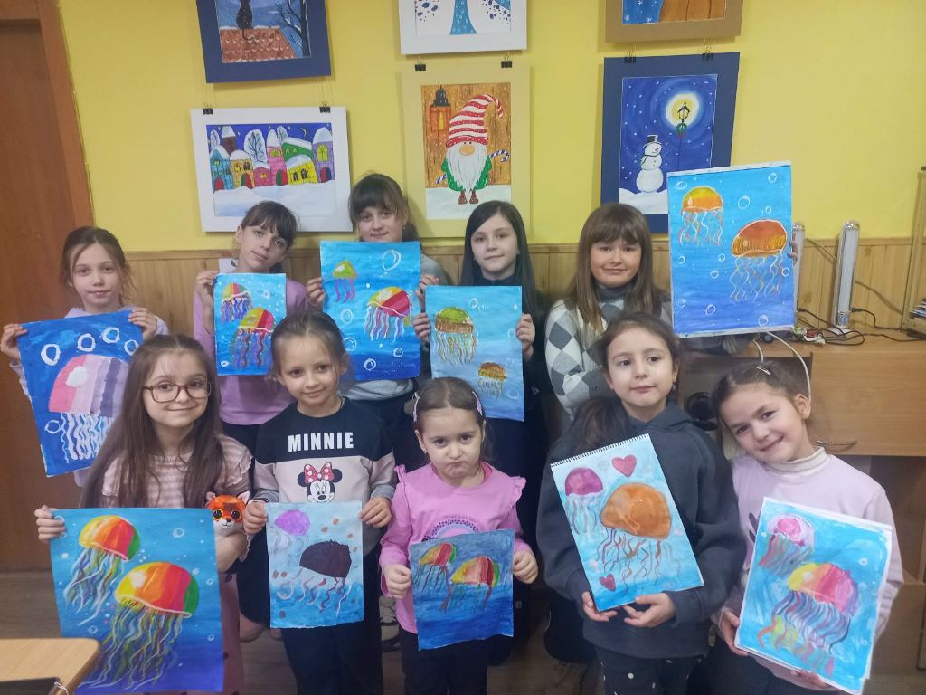 На творчому занятті вихованці студії "Дотик пензля" (керівник Ольга Пицко) малювали медуз.