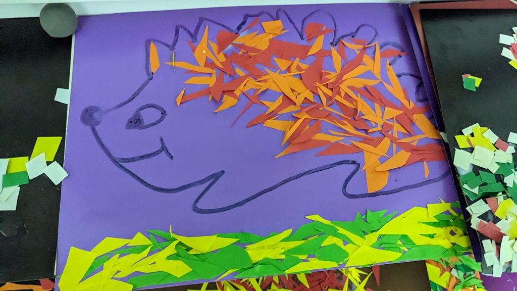 На занятті гуртка декоративно-ужиткового мистецтва «Орнамент» (керівник Леочко Надія) вихованці створювали чарівну паперову мозаїку “Їжачок”.