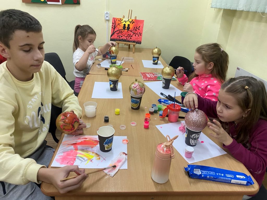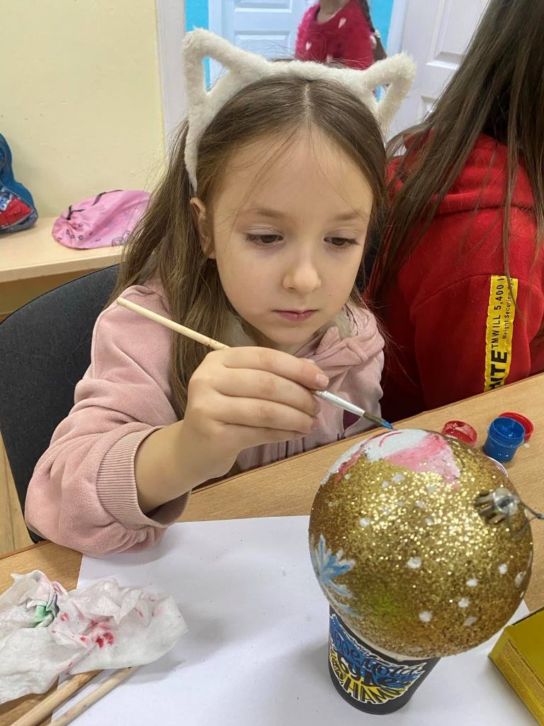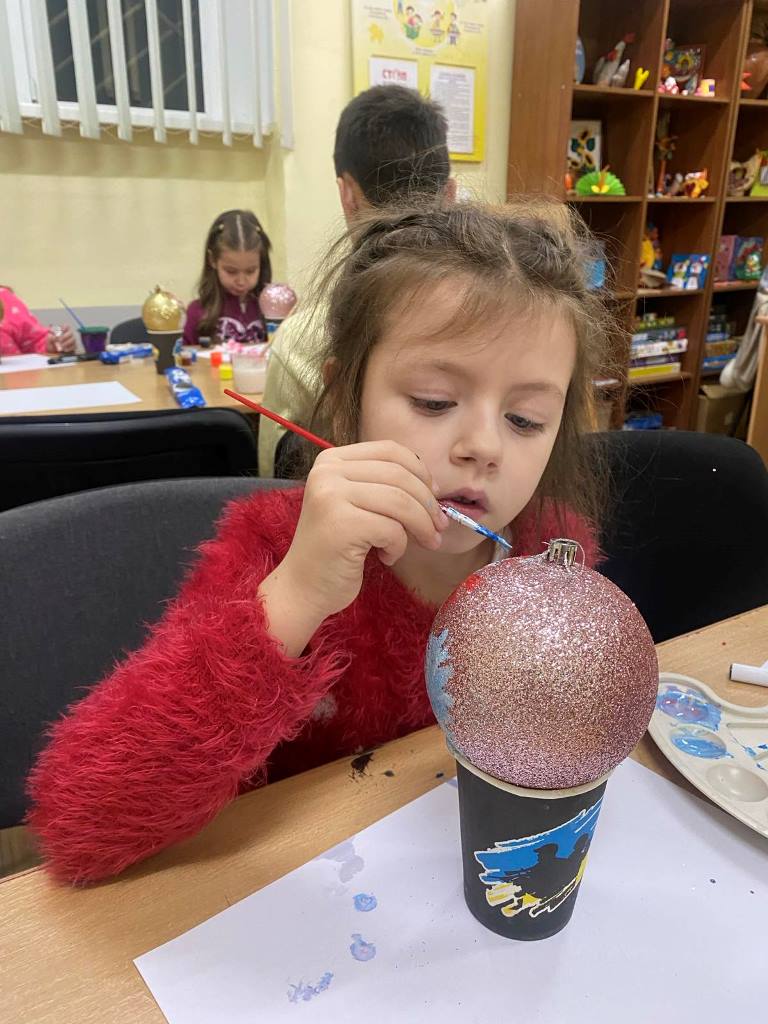 Яскраво, творчо та натхненно відбулося відкрите заняття з розпису ялинкових куль у студії образотворчого мистецтва «Акварель» (керівник Іванна Равлюк). Під час роботи педагог застосувала методику показу з коментарем, поетапне виконання завдань та індивідуальний підхід до кожного вихованця, інтерактивну бесіду, вправи на розвиток уяви.