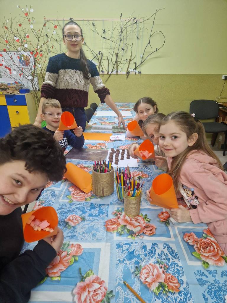 У дитячо-юнацькому клубі «Богатир» діти з цікавістю спостерігали за процесом роботи з шоколадом, знайомилися з етапами його розтоплення та заливання у форми й дізнавалися як створюються солодкі вироби.