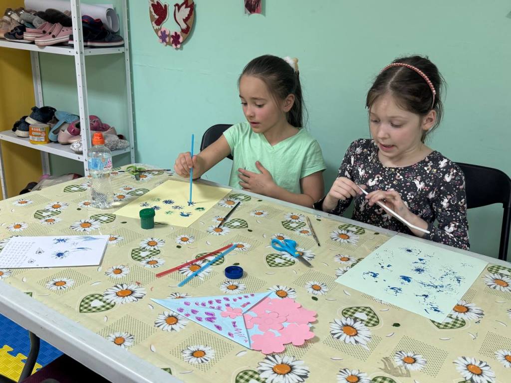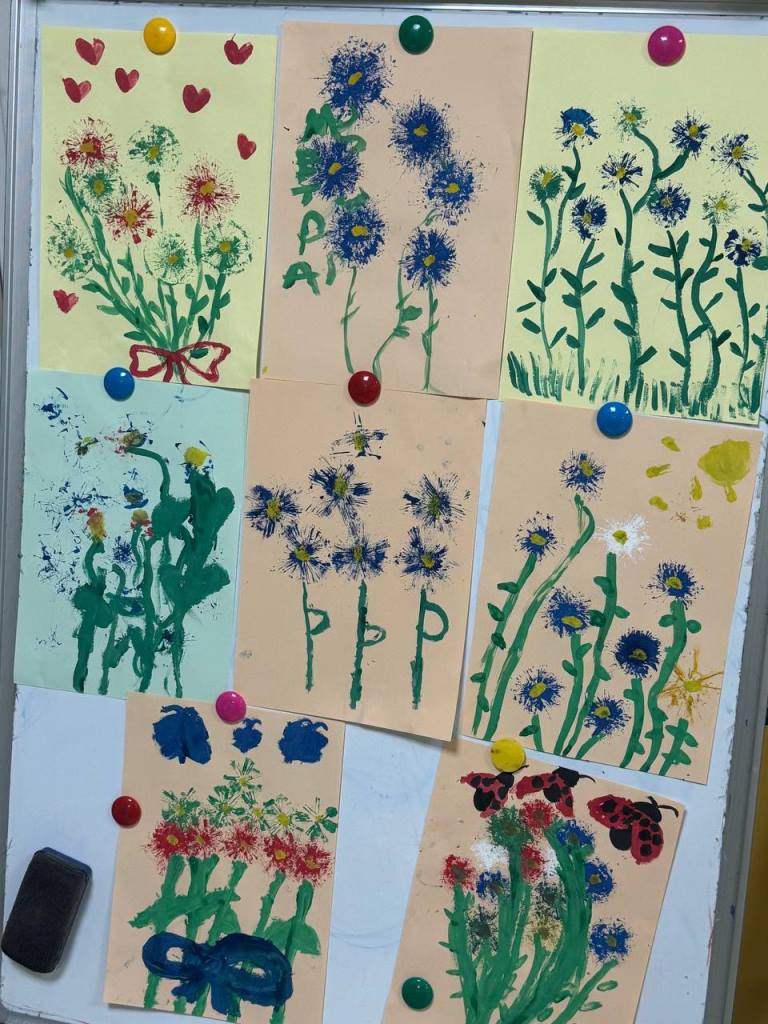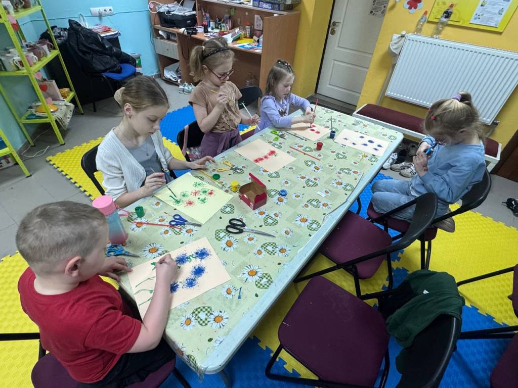 У творчій атмосфері та з яскравими фарбами відбулося цікаве заняття гуртка «Кольорові емоції». Вихованці створювали весняні квіти, використовуючи незвичайну техніку малювання – відбитки та розбризкування фарби.