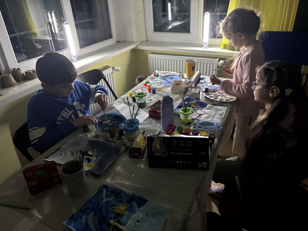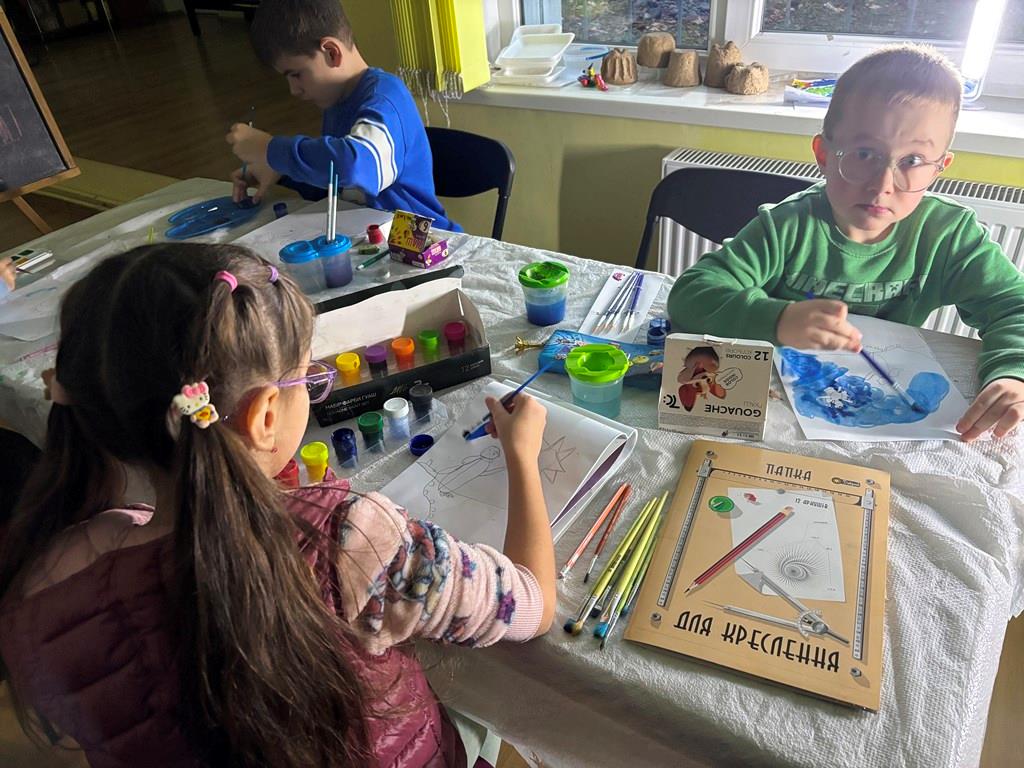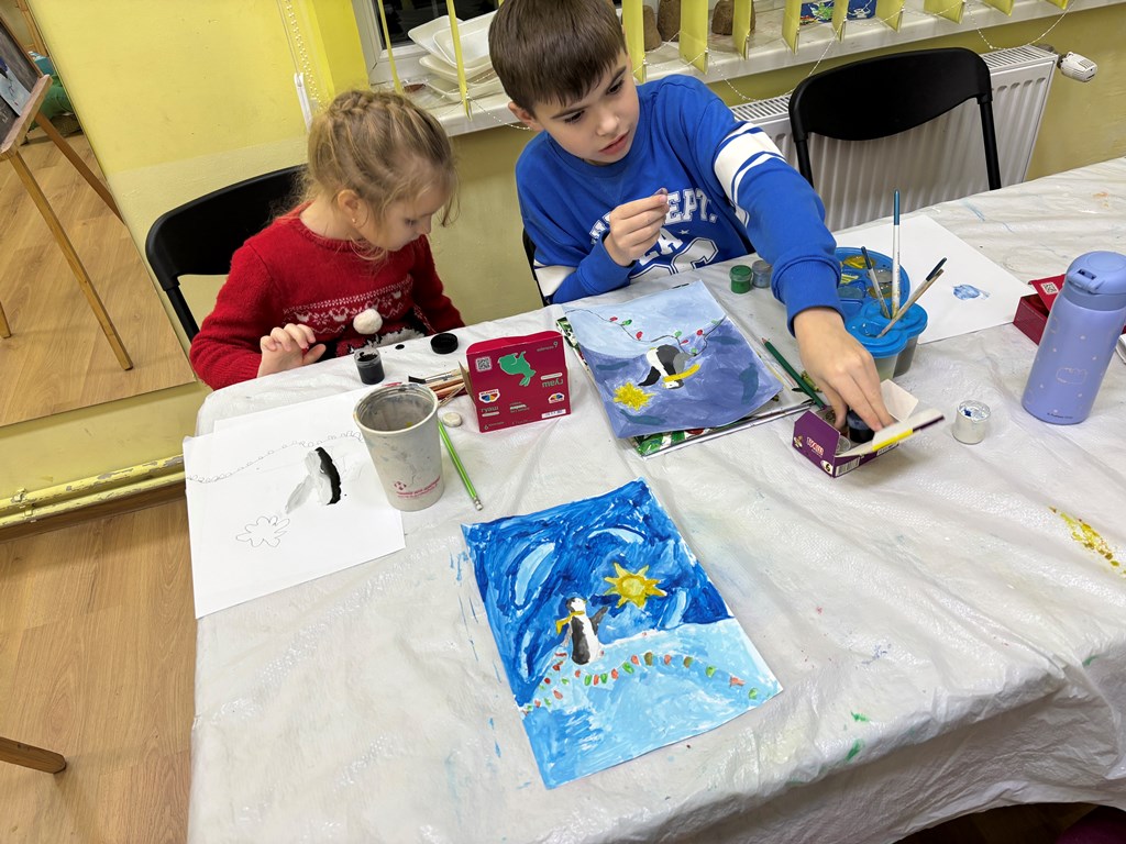 На занятті гуртка з образотворчого мистецтва «Аполлон» в дитячо-юнацькому клубі «Глобус» (керівник Семеген Кароліна) вихованці ознайомилися з базовими вправами кольорознавства та формоутворення створюючи зимову композицію.